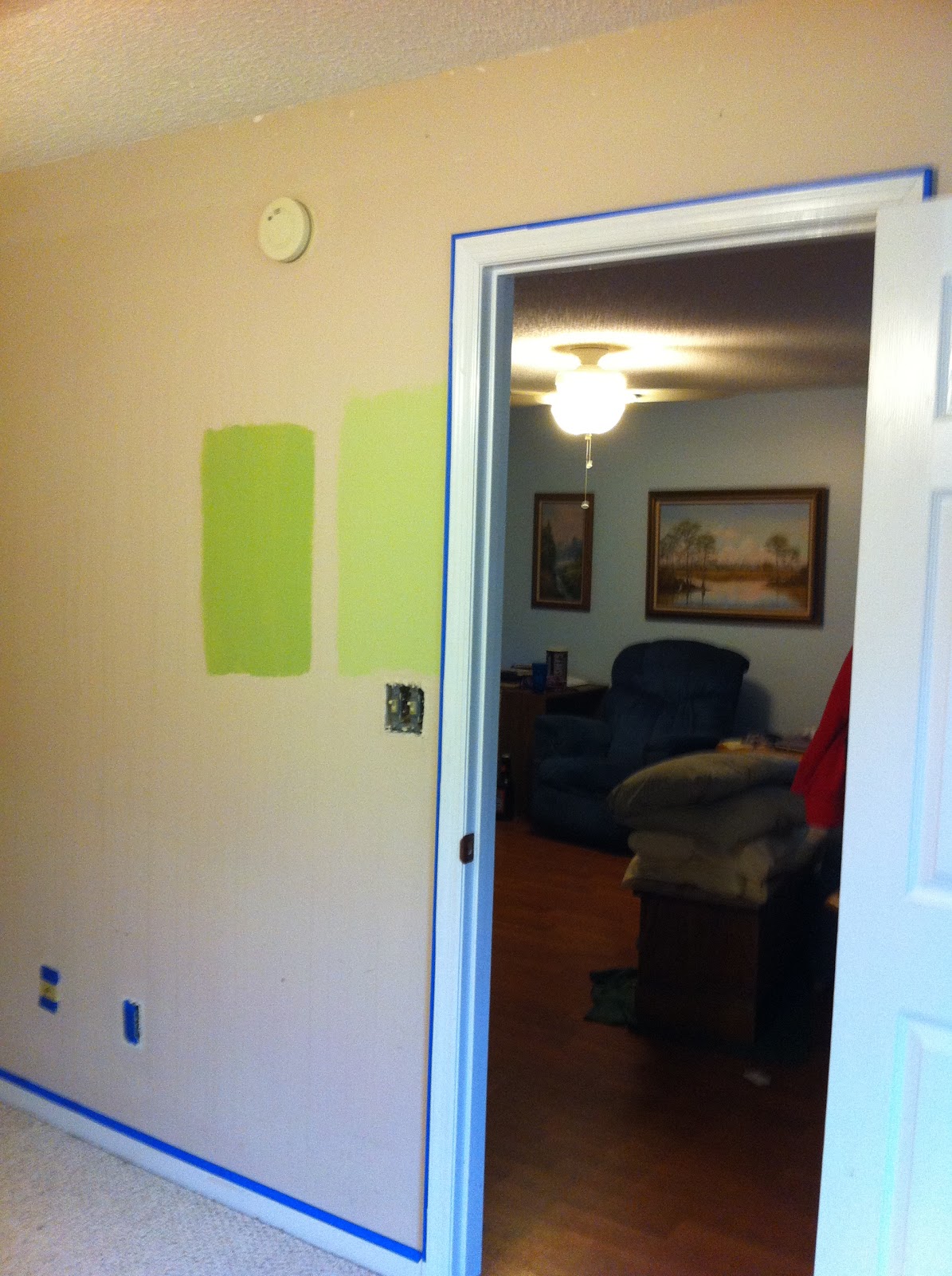 This pic is to show how different the green is from the curtains we were originally wanting to match. We decided that we didn't want that green...so will be doing new curtains.